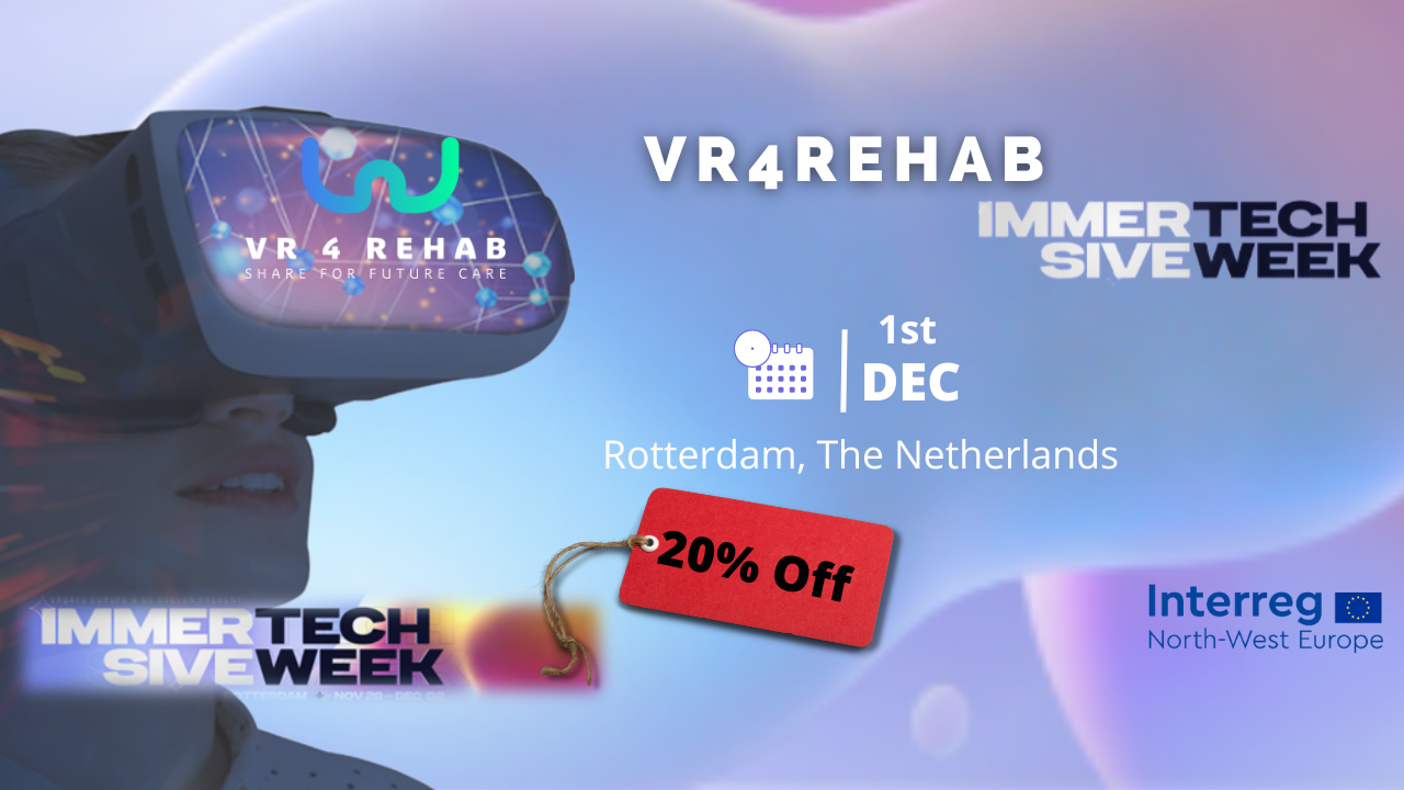 We are glad to announce that the VR4REHAB Project will take part in the event of the year, the Immersive Tech Week (ITW) next 1st of December from 13:30 to 14:30 (local time) at De Doelen in Rotterdam, The Netherlands.