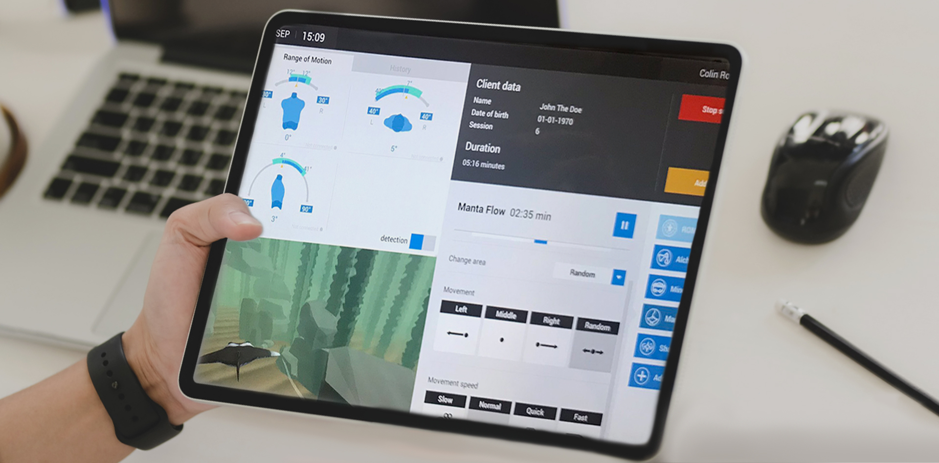 Virtual reality provokes movements in a natural way, patients learn that they can rely on their own body again so that they can eventually practice the training without the need of a therapist. The game element also motivates them to continue with the training and gives the patients direct and continuous feedback.